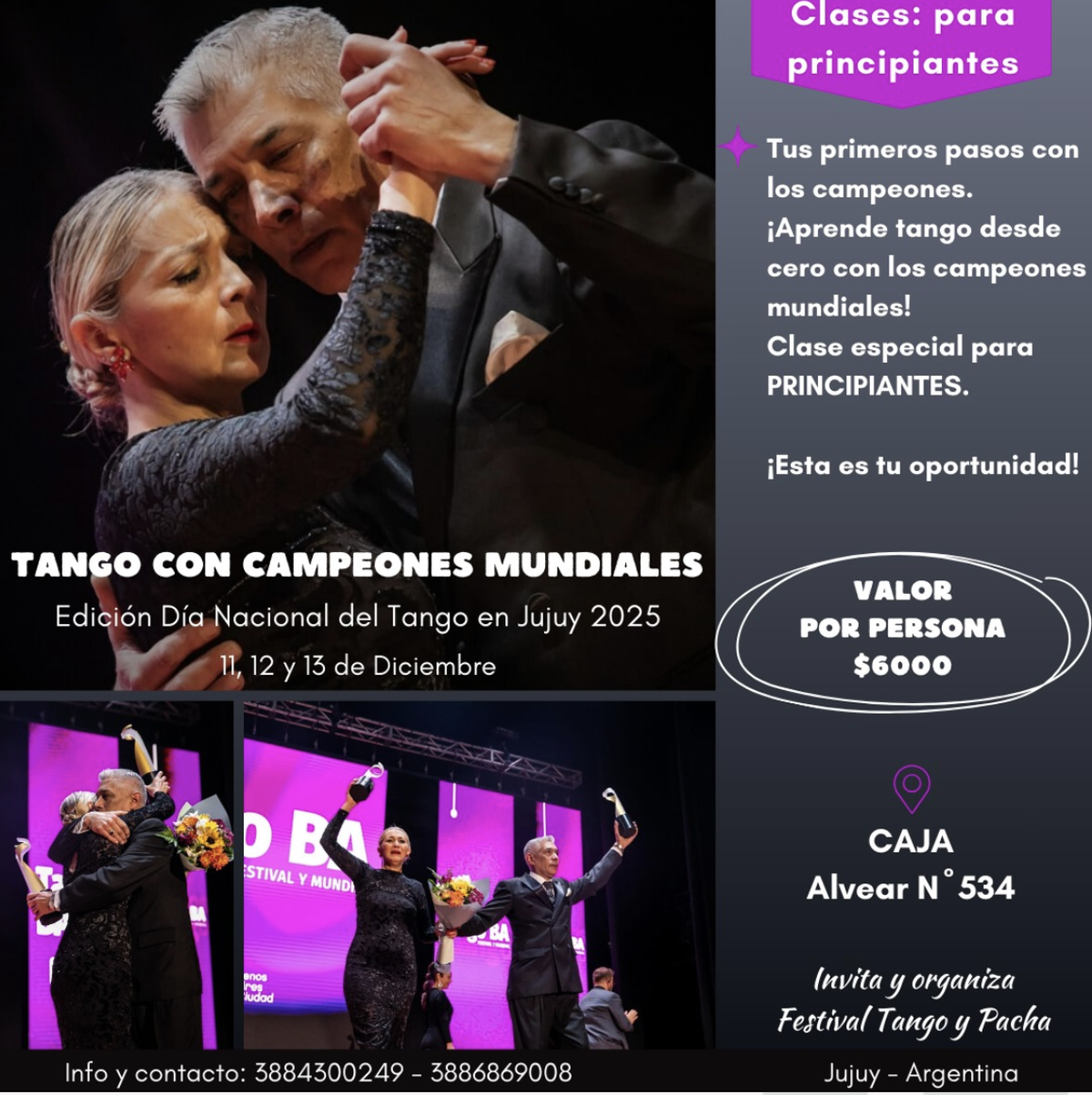 Con un valor accesible de $6000 por clase, la iniciativa democratiza el acceso a una formación de calidad mundial. «Podes bailar tu primer tango con ellos o perfeccionar tu baile», invitan desde Festival Tango y Pacha, que organiza la actividad. Se trata de una clase especial pensada para principiantes que permite aprender desde cero junto a campeones mundiales.