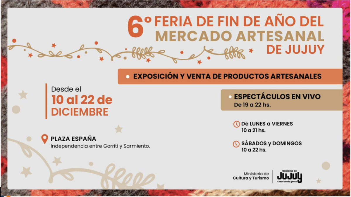 Hasta el 22 de diciembre, la Plaza España se transformará en un espacio vibrante donde artesanos locales desplegarán lo mejor de su producción en la Sexta Feria de Fin de Año del Mercado Artesanal de Jujuy, un evento que combina venta, exposición y entretenimiento.