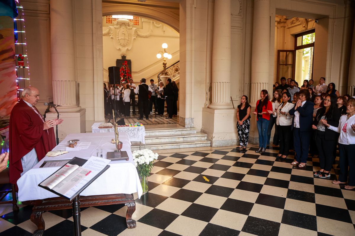 El marco de las fiestas de fin de año, se realizó en el ingreso a la casa de gobierno la tradicional misa religiosa en honor a la fiesta navideña, organizado por el personal de la institución.