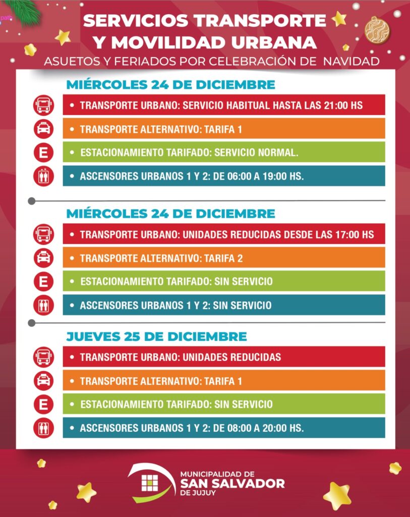 • Transporte Urbano: servicio habitual hasta las 21:00 hs.