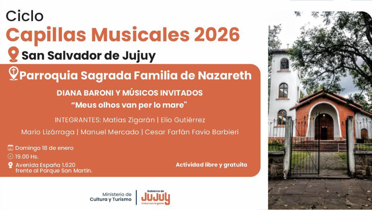 La Parroquia Sagrada Familia de Nazareth de San Salvador de Jujuy acogerá este domingo el primer concierto del Ciclo Capillas Musicales 2026 con Diana Baroni como artista convocante, acompañada por destacados músicos en una propuesta titulada «Meus olhos van per lo mare».