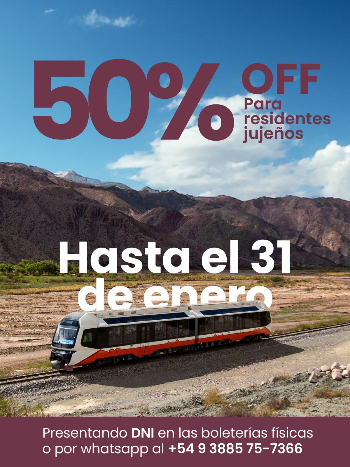 La promoción del Tren Solar de la Quebrada, exclusiva para residentes de Jujuy, estará vigente hasta el 31 de enero.