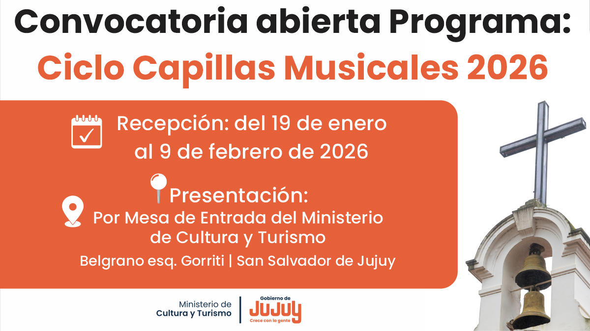 La recepción de propuestas se realizará a partir de este lunes 19 de enero y hasta el lunes 9 de febrero de 2026. La presentación debe efectuarse por Mesa de Entrada del Ministerio de Cultura y Turismo, ubicado en Belgrano esquina Gorriti, San Salvador de Jujuy.