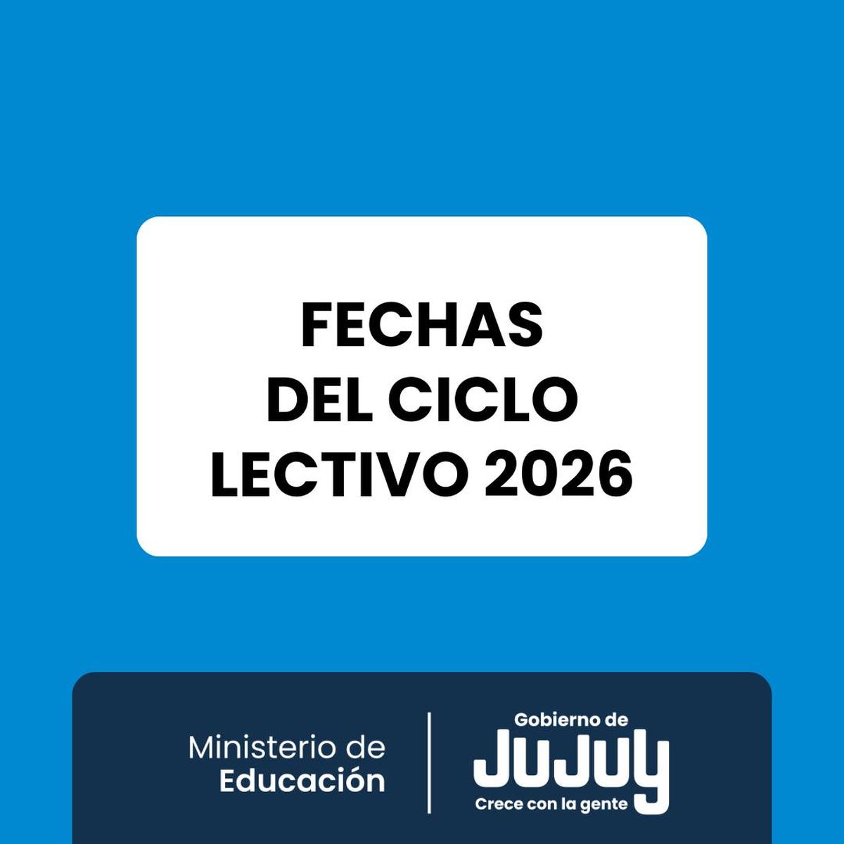El Ministerio de Educación de la provincia de Jujuy comunicó a la docencia, familias y comunidad en general que ya están definidas las fechas del Ciclo Lectivo 2026.