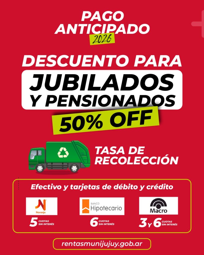 Sobre los alcances del Plan, contempla importantes descuentos, entre ellos un 30 % en el Impuesto Automotor y un 20 % en la tasa de Recolección de Residuos. A estos beneficios se suma un 10 % adicional para los contribuyentes que accedan al beneficio de “Buen Contribuyente”, es decir, aquellos que hayan cumplido en tiempo y forma con sus obligaciones. Asimismo, se agrega un 5 % extra para quienes realicen el pago a través del sitio web oficial: rentasmunijujuy.gov.ar.